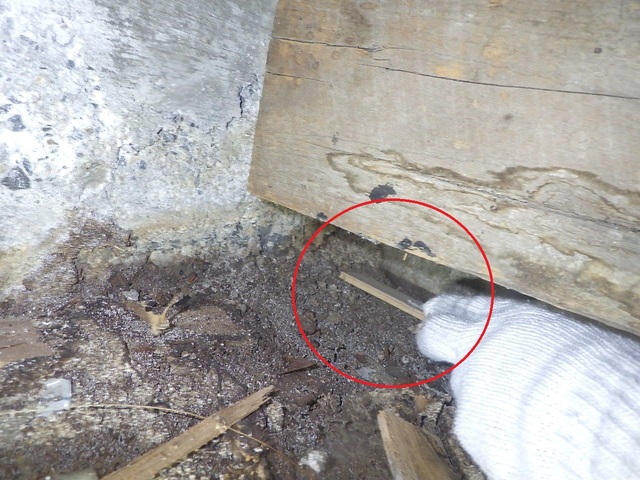 中には現在使用されていない蟻道もありましたが、トイレ前床下の蟻道を少し崩すとヤマトシロアリの生体が確認できました。
