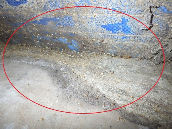 2階の畳を上げると無数のイエシロアリが確認でき、7月にお伺いした時は待機している羽アリの姿も確認ができました。