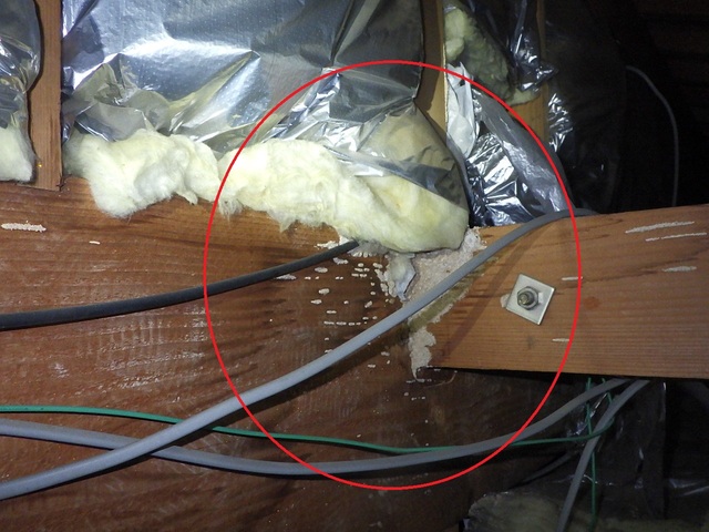 壁面の断熱材をめくると分巣がありました。