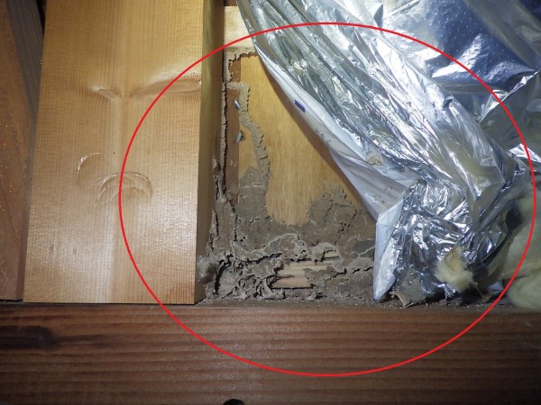 被害が大きい浴室周辺では塊状になった蟻道が確認できました。