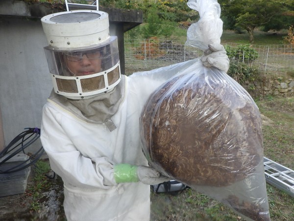 中には数百匹のハチがいるので、近隣に飛ばないよう手早く駆除する必要があります。