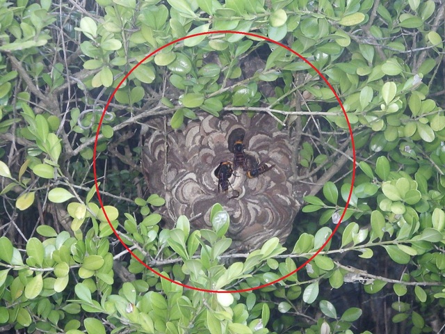 現場に到着し確認すると、確かに植え込みの間から巣が確認できます。