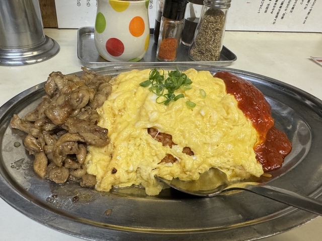 しっかり味が付いたケチャップライスとスパイシーなかしわバターが合うんです。