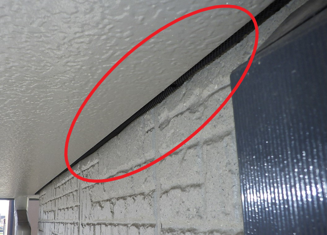 天井の軒と外壁のわずかな隙間(2㎝程度)と壁面換気口に掴まり