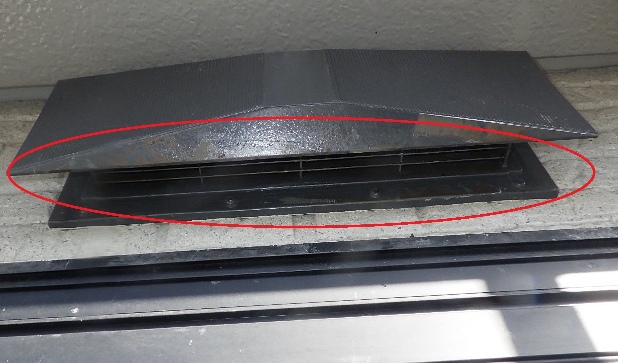 通気剤による隙間埋めと、パンチングメタルで換気口を覆う工事を実施しました。