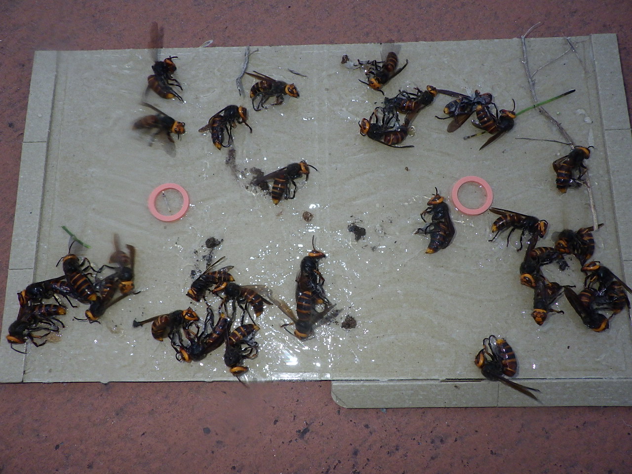 巣が無くなってもしばらくの間(数日~1週間程度)は、外に出ていた働きバチが周辺を飛びます。