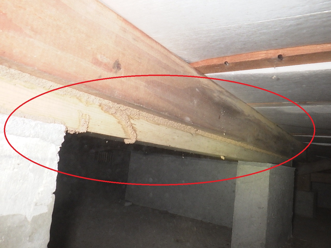 この被害はイエシロアリという種類によるもので、自分たちで水を運んで食害し、屋根裏にまで到達して被害を与えることもあります。