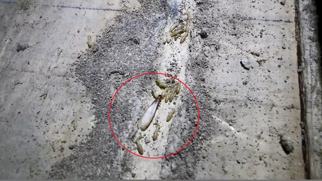 羽アリを見かけた玄関側の蟻道は特に太く、中を活発に動いている状態です。
