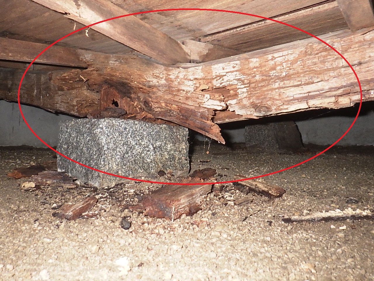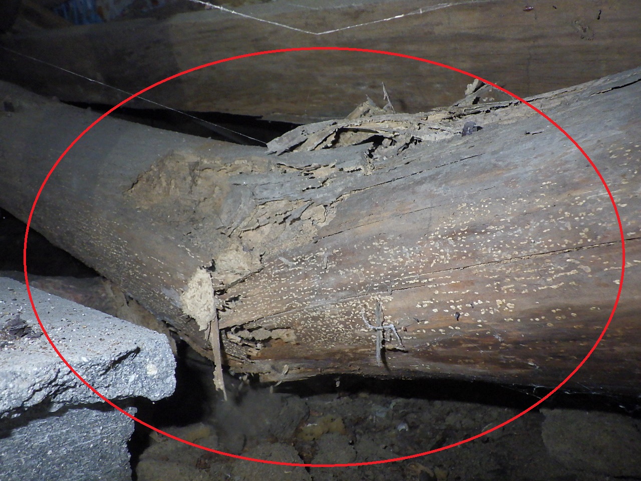 シロアリの被害もあったものの、木材の腐朽(腐り)によって強度が無くなっていました。