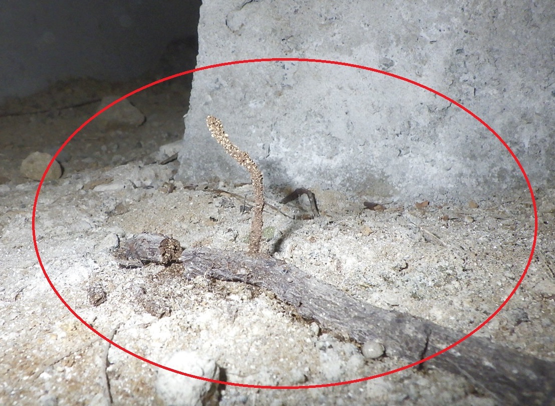 各部屋の床下を調べていると、シロアリの蟻道(ぎどう:土などで形成されたトンネル状の通路)が確認できました。