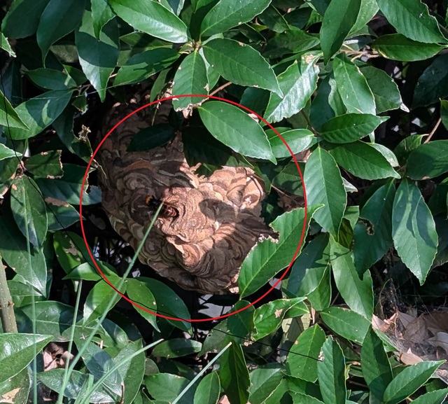 低い木の枝などに巣を作る「コガタスズメバチ」でした。