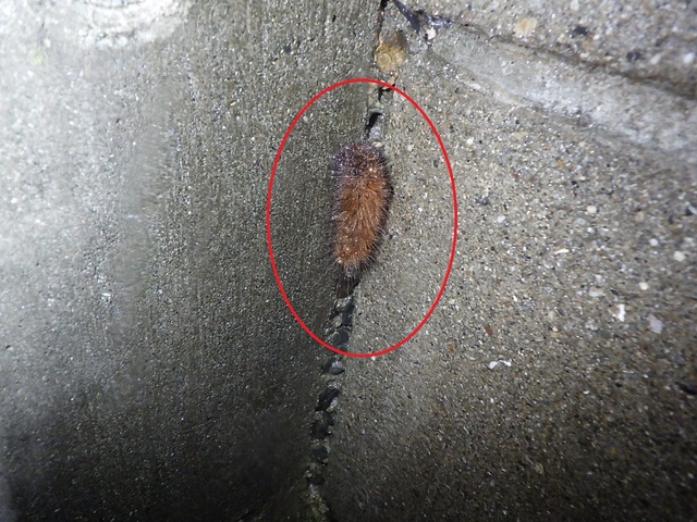 敷地に入ると、数は少ないものの茶色のケムシがいます。