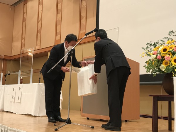 取締役戸阪が感謝状と記念品をいただきました。