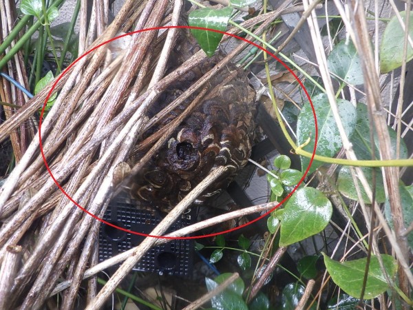 植樹の中に巣があるとお聞きし、確認するとコガタスズメバチでした。