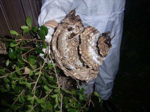 薬剤処理を行い、巣内のハチが死滅したことを確認して、駆除作業完了となります。
