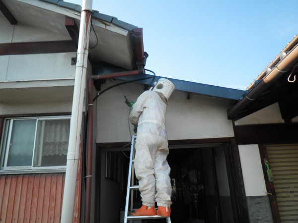 営巣箇所の周辺にも薬剤散布を行い、忌避(嫌がり避ける)効果によって新たな巣作りの防止を致します。