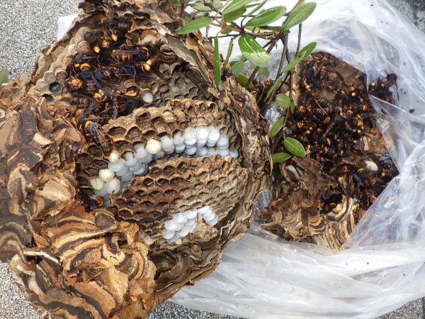 スズメバチは、ミツバチと並び最も社会性を発達させたハチであり、数万の育室を有する大きな巣を作るものもいます。