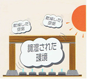 ![]() 空気が乾燥してくると溜め込んだ 湿気を少しづつ放出 |