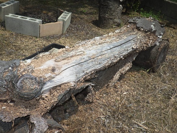 更にベンチやイスとして置かれていた丸太も、シロアリによってボロボロになっていました。