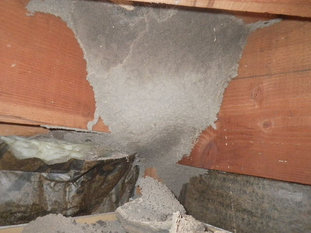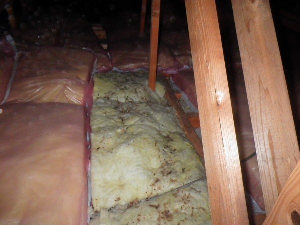 すると、断熱材の表面が露わになっており、その上に無数の糞が確認できました。