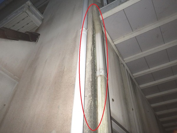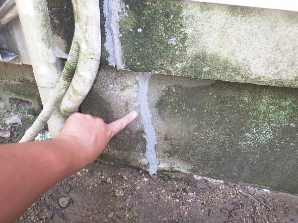 写真のような外壁のクラックから雨水が入り込み、シロアリの侵入を誘引して更に水取り場となってしまっています。