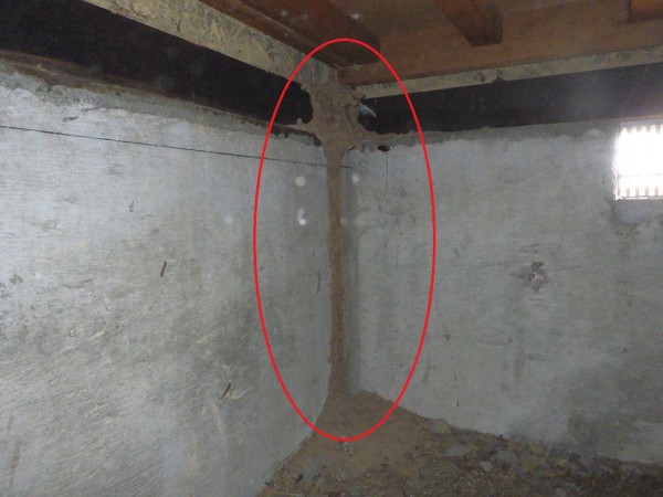 床下では太い蟻道(主に土で形成されたシロアリ専用の通路)がいくつも見られ、天井裏にまで被害が及んでいました。