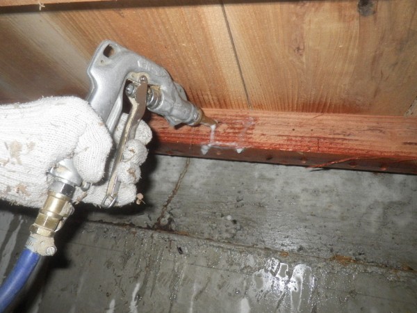 床下以外にも、押入の中や脱衣場、浴室、トイレなど各被害場所に薬剤処理をおこないました。