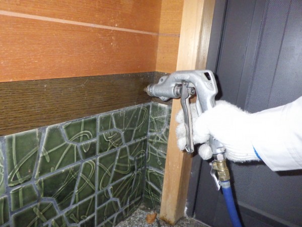 玄関でも被害が見られ、壁面や被害箇所への薬剤注入をおこなっていきました。