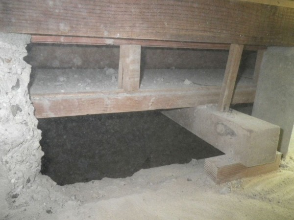 玄関付近の床下にもシロアリの被害がありましたが、高さが低いため土を掘り進む必要があり苦労しました。