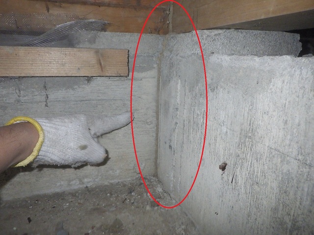 基礎際の打継部分はすき間やクラックができやすく、シロアリはその小さなすき間から