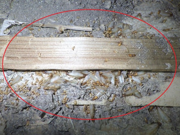 中には現在使用されていない蟻道もありましたが、トイレ前床下の蟻道を少し崩すとヤマトシロアリの生体が確認できました。
