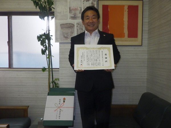 取締役戸阪が感謝状と記念品をいただきました。