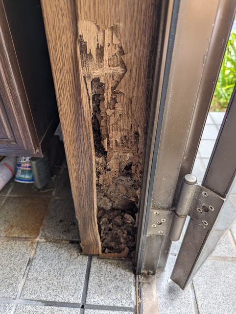 しかもシロアリは木の表面は残し内部を食べ進む為、見た目では被害を発見し難いです。