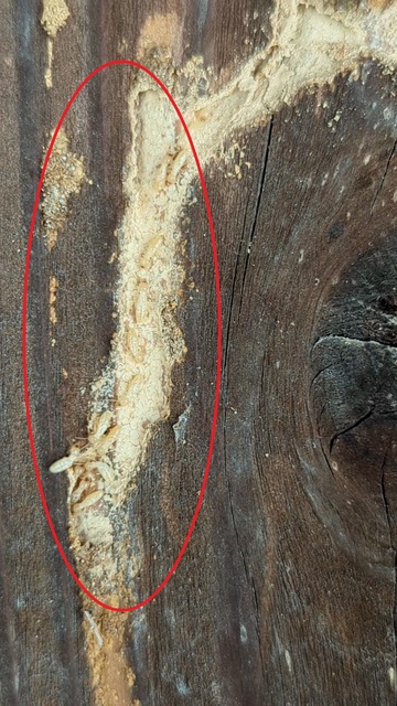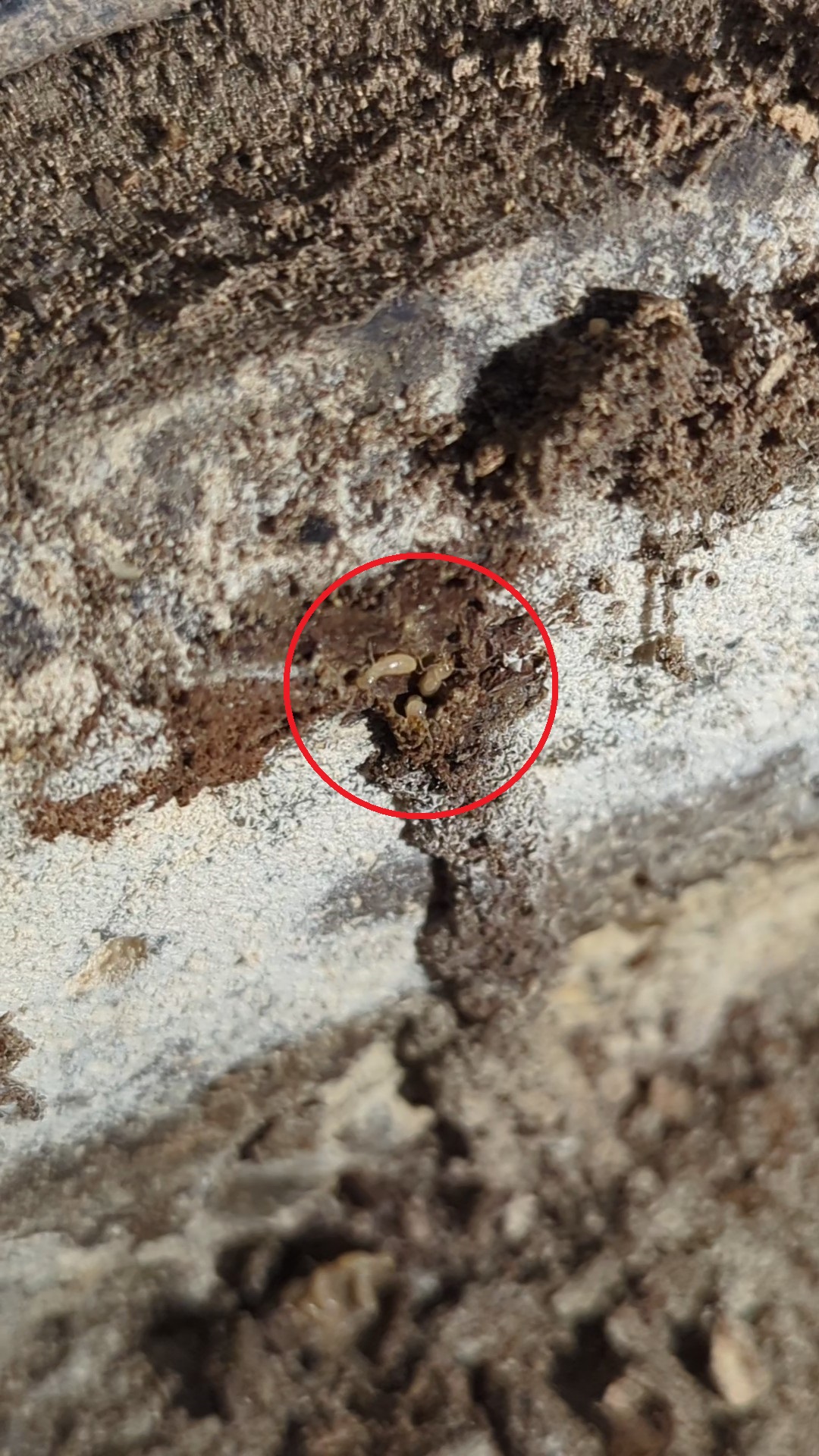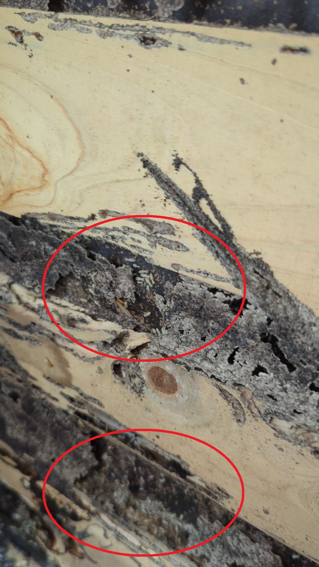 跡を見つけ、よく見たら白い虫がいるとの事でお伺いしました。