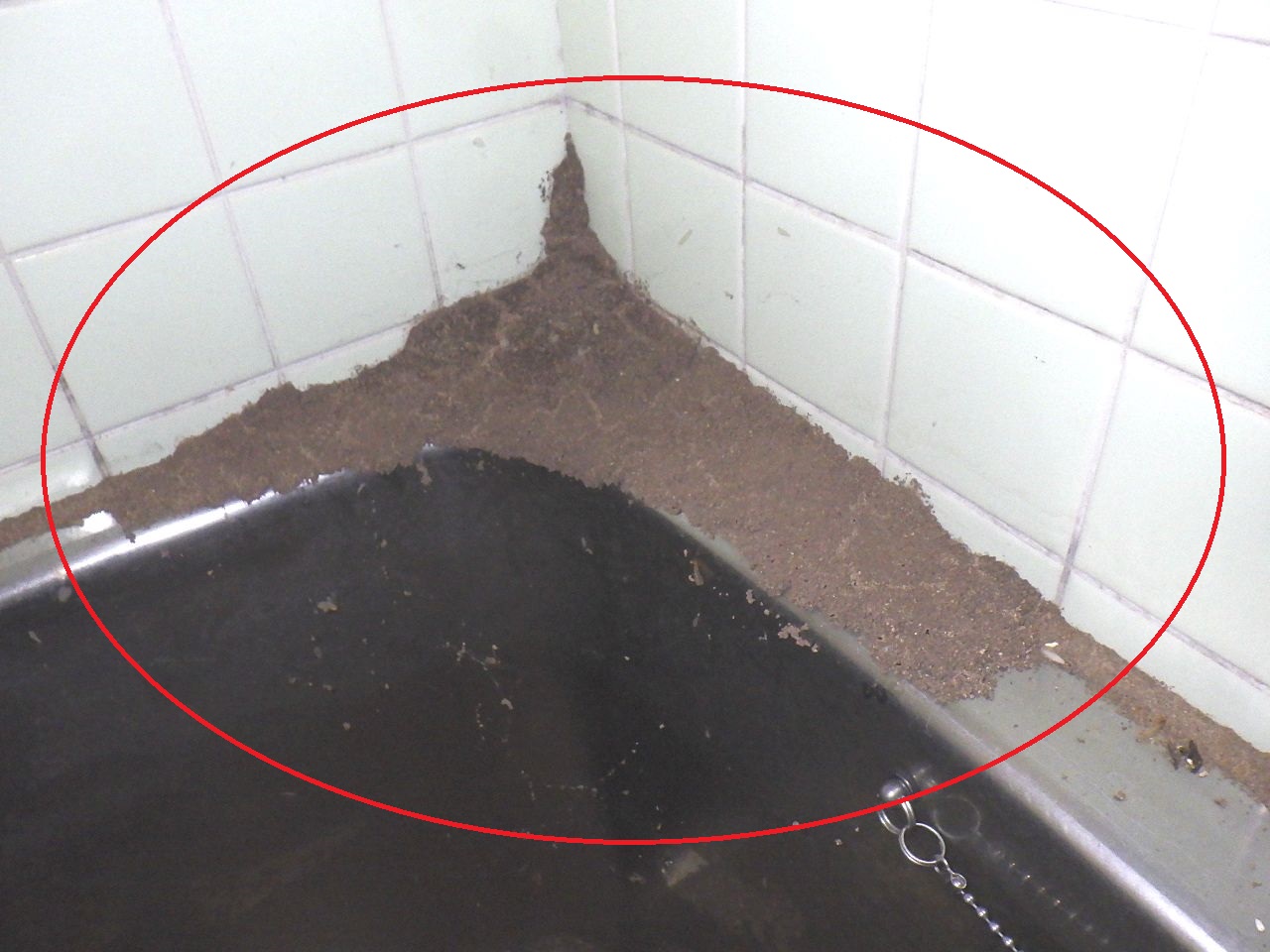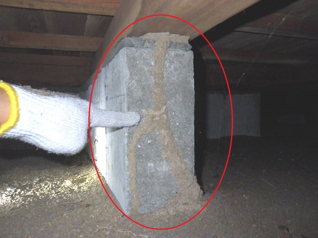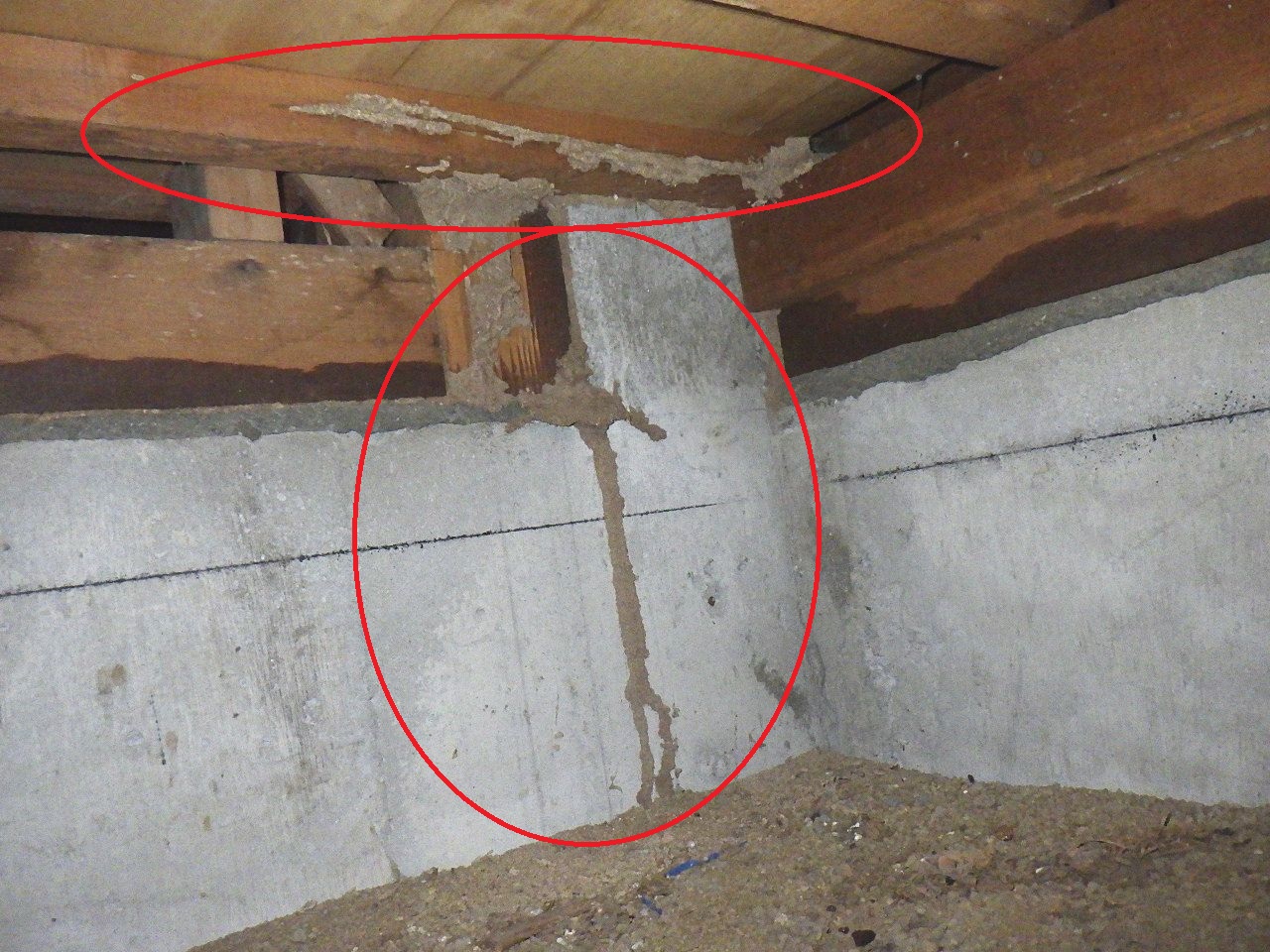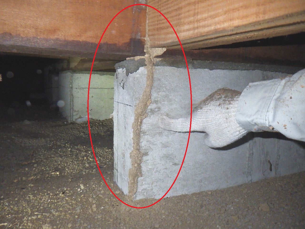 床下調査をすると、各部屋床下で蟻道(ぎどう)が見つかりました。