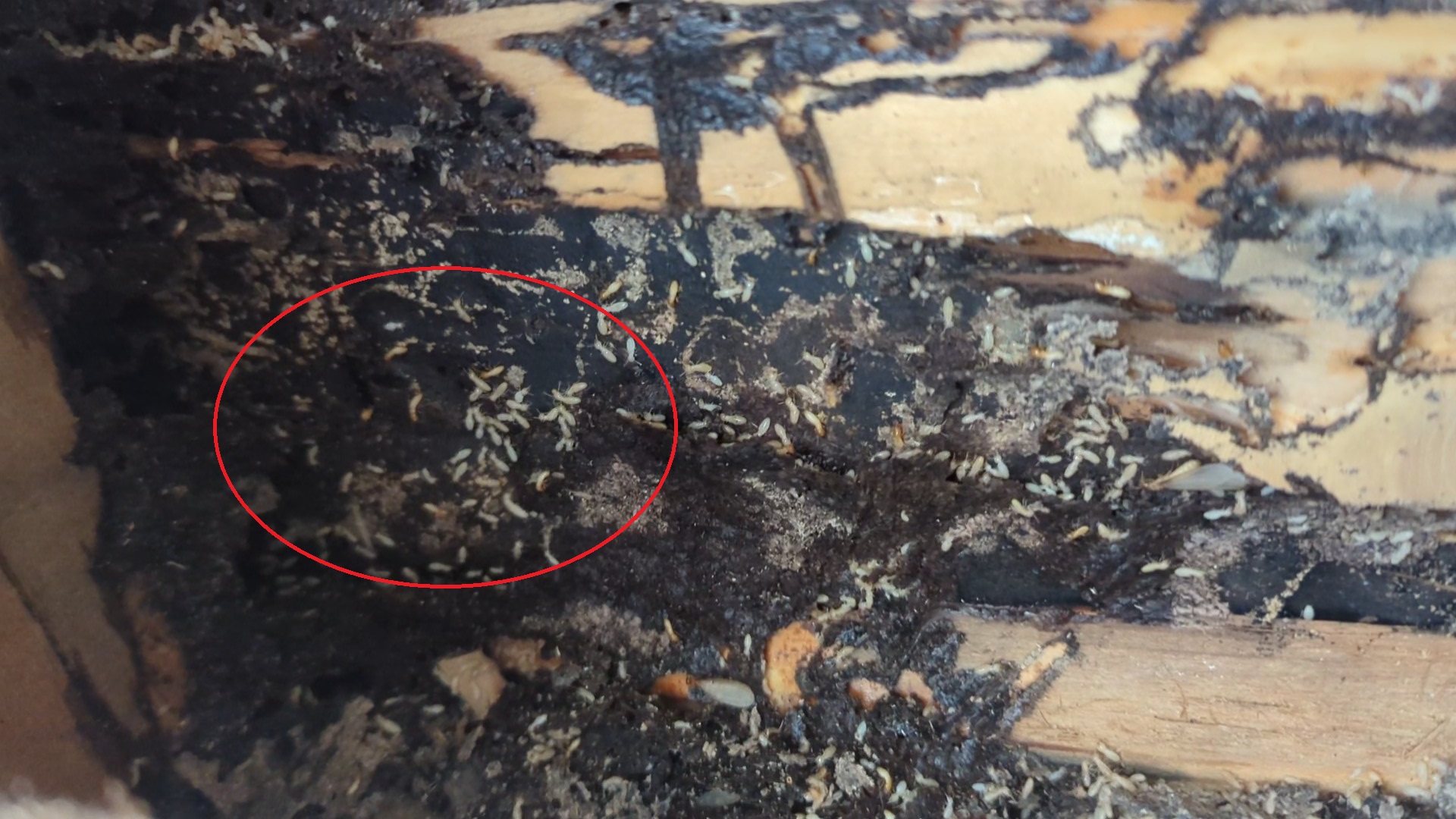 残りの90%近くは地中に残り、お家を支える大切な木材を食べ進んでいます。