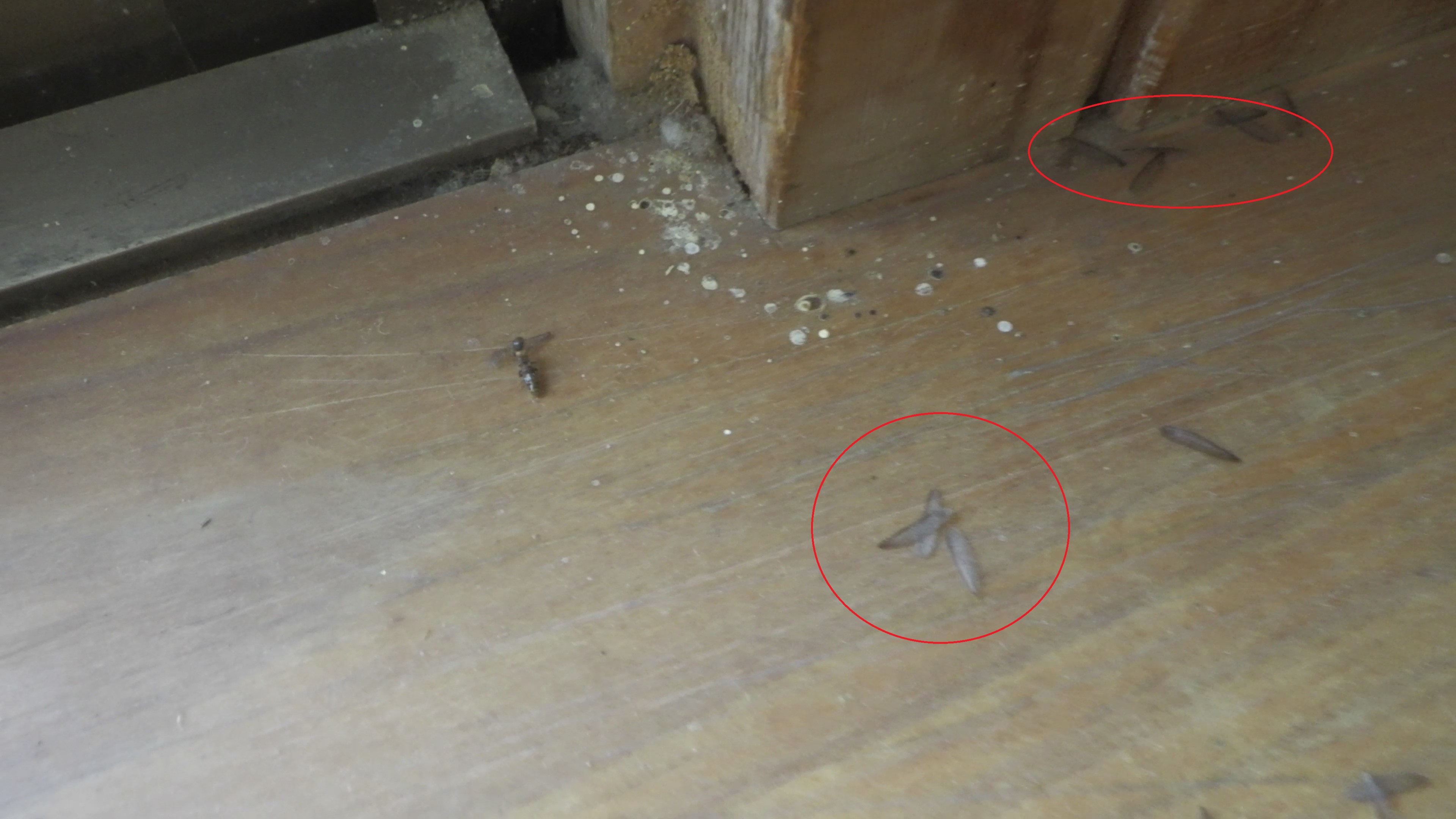 駆除開始と同時に隠れていた羽アリが飛びだしました。
