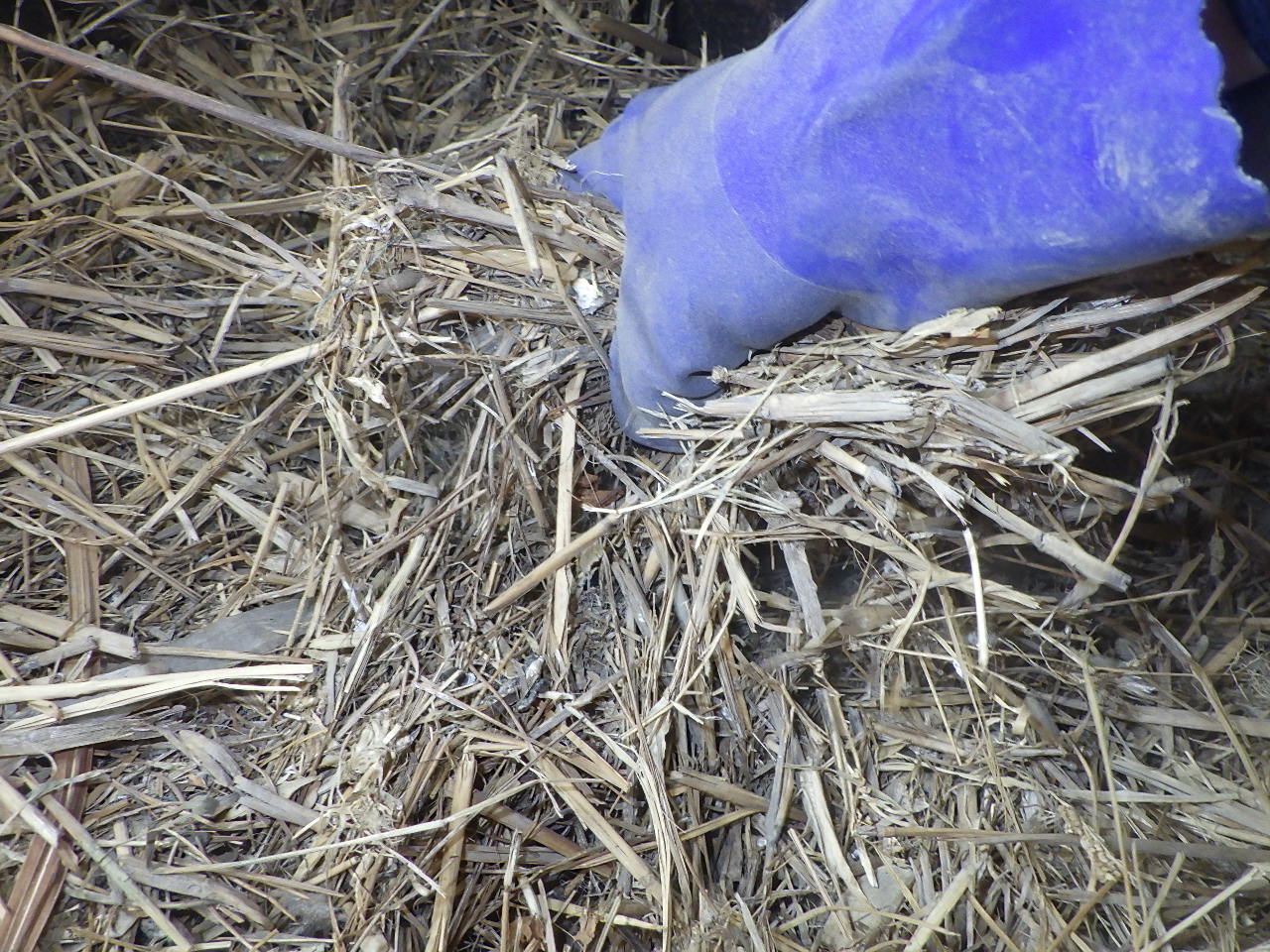 横になりながら下のワラを手づかみで撤去していきます。
