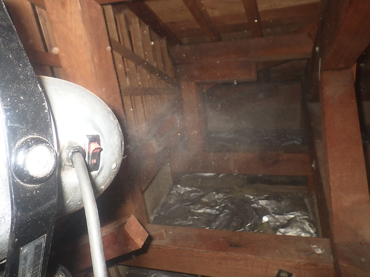 天井裏の溜めフンです。場合によっては、天井板に尿染みが出来ることもあります。