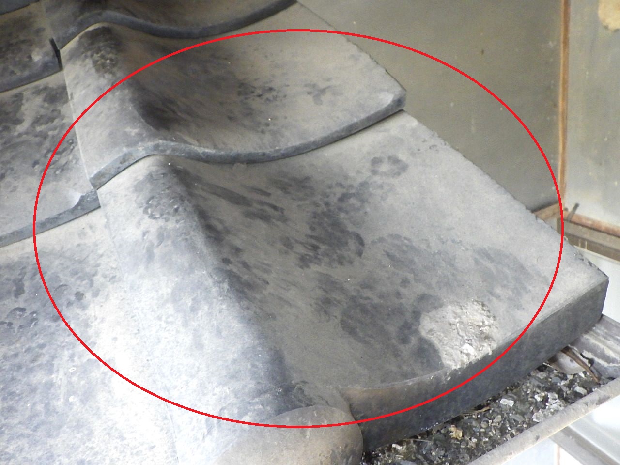 上の写真は瓦に残されたハクビシンの足跡です。
