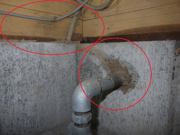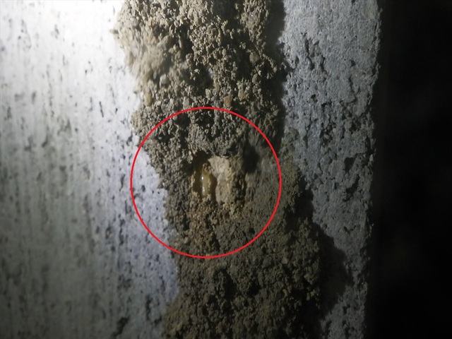 シロアリの被害があるとお聞きし、床下を調査すると蟻道(土などで形成されたトンネル状の通路)が何本も確認できました。