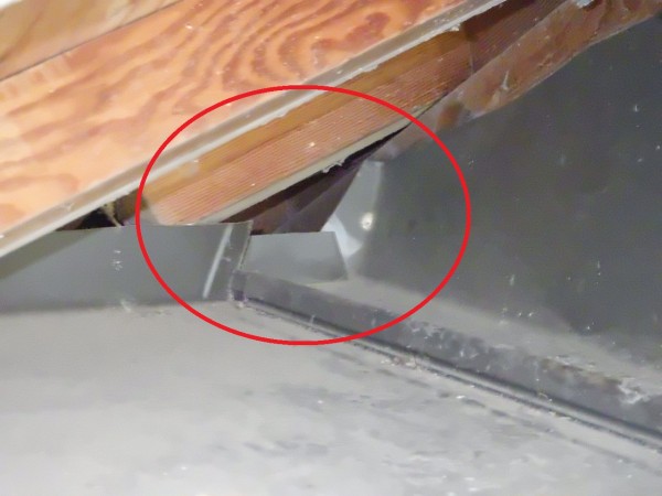 侵入場所を調査すると、屋根と建物の継ぎ目に侵入できるすき間を発見。