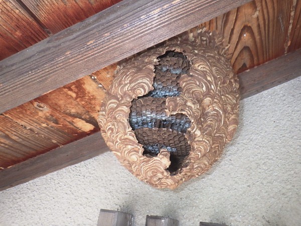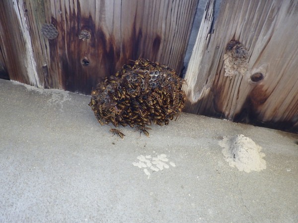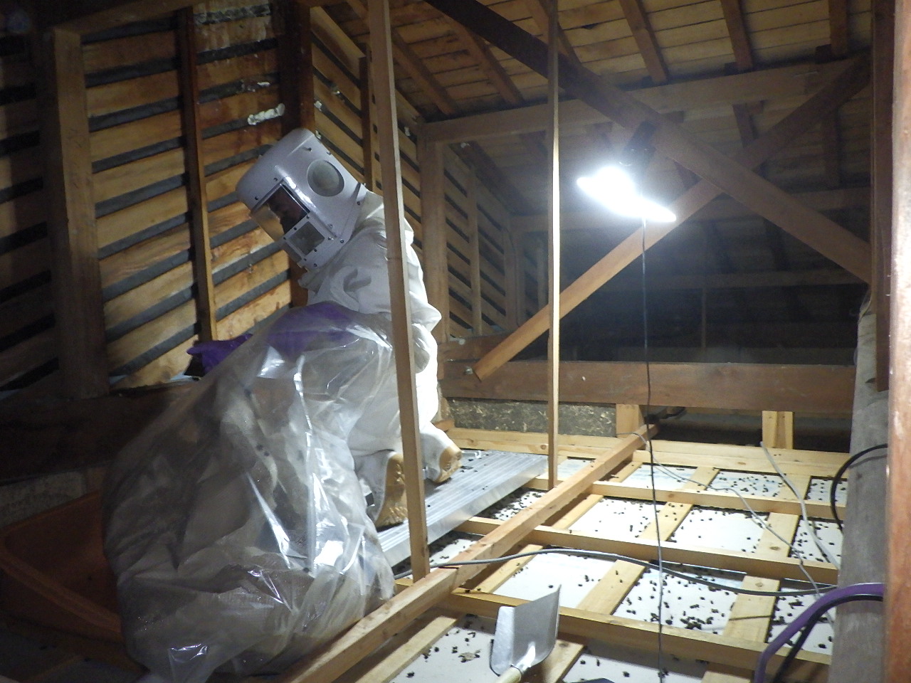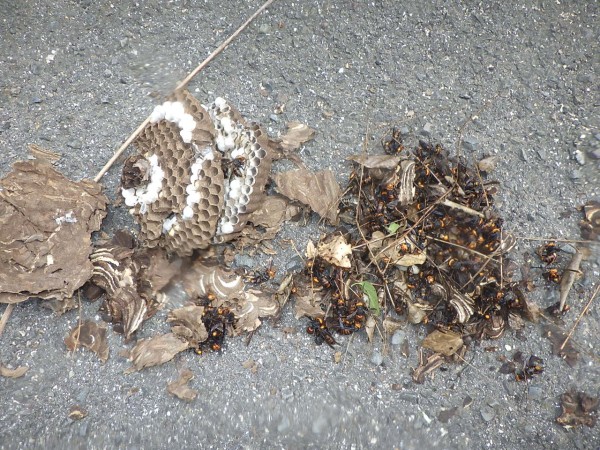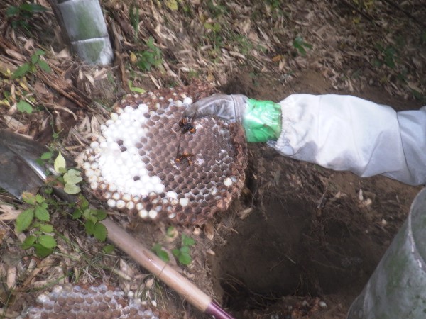 薬剤処理を行い、巣内のハチが死滅したことを確認して、駆除作業完了となります。