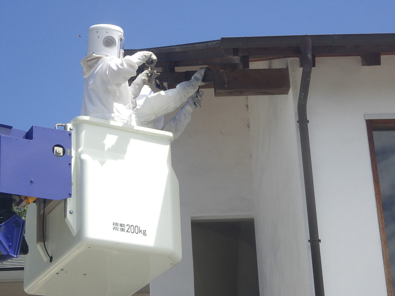 営巣箇所の周辺にも薬剤散布を行い、忌避(嫌がり避ける)効果によって新たな巣作りの防止を致します。