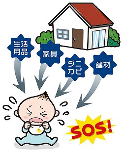 住宅に由来する健康障害の総称で倦怠感・めまい・頭痛・湿疹・のどの痛み・呼吸器疾患などの原因の一つとされています。